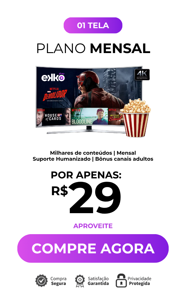Assista todo conteúdo em um só lugar, você não precisa mais pagar diversos serviços, aqui na Ekko Plus você encontra tudo que deseja, para você e sua família se divertir com milhares de conteúdos.